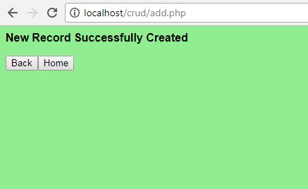 echo "<a href='create.php'><button type='button'>Back</button></a>";