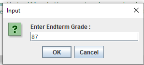 input3 = JOptionPane.showInputDialog(null,"Enter Endterm Grade : ");